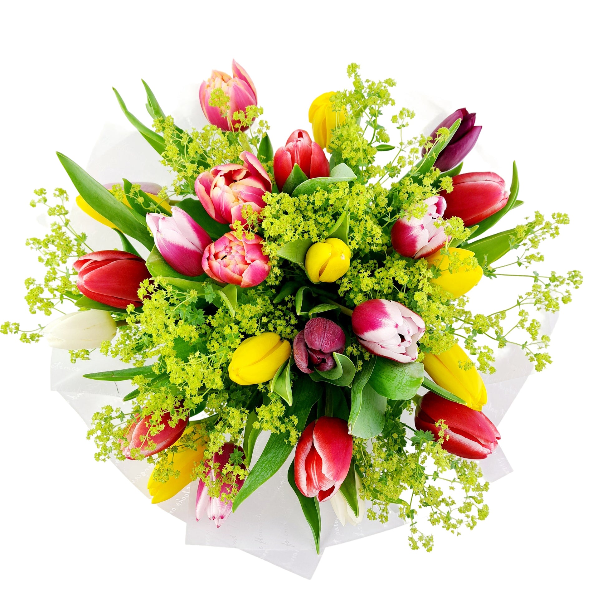 Veselá a svieža kytica plná farieb, ktorá rozžiari každý priestor. Kombinácia farebných tulipánov a jemnej alchemilky pôsobí prirodzene, ľahko a jarne. Ideálny darček pre potešenie, poďakovanie alebo spríjemnenie dňa.