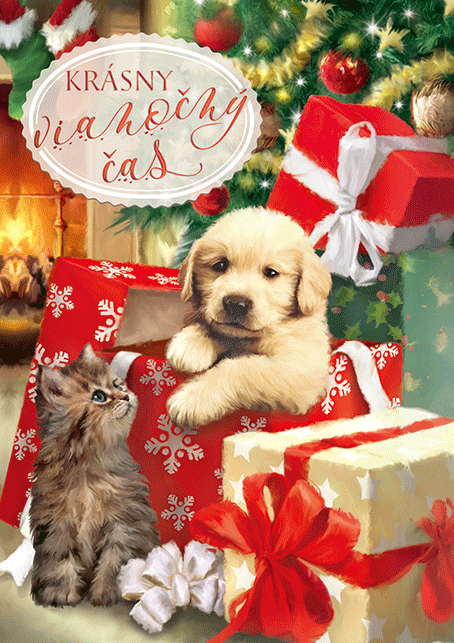 3D Pozdrav - Krásny vianočný čas - Pes a mačka