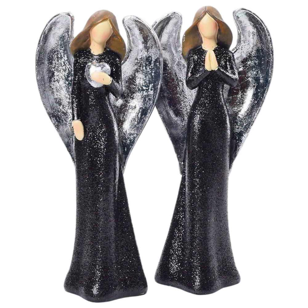 Anjel čierny so striebornými krídlami 25cm