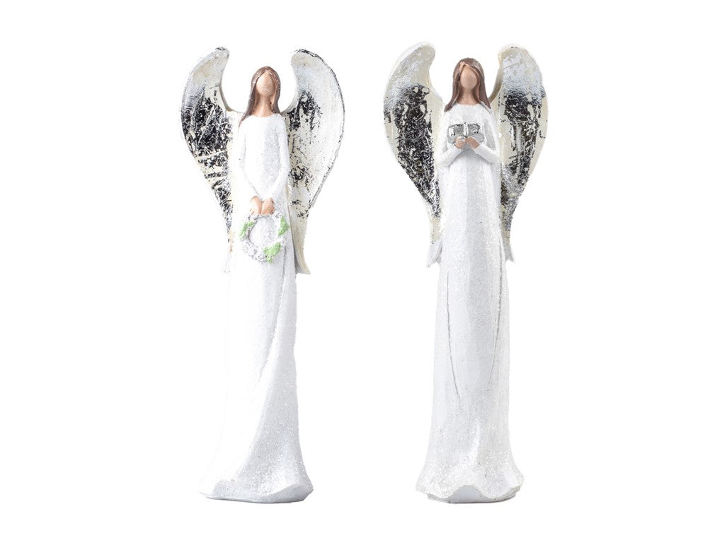 Anjel vianočný so striebornými krídlami biely 20cm