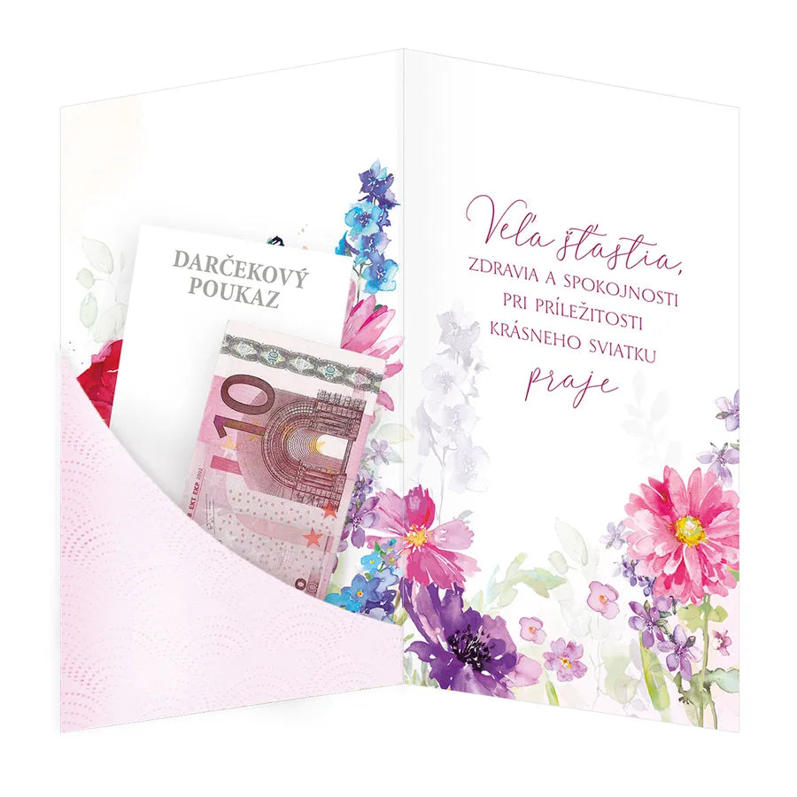 Blahoželanie k 50. narodeninám s textom vo vnútri. Súčasťou priania je aj farebne zladená obálka.