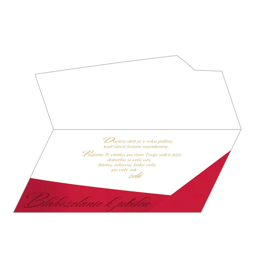 Blahoželanie k 55. narodeninám s textom vo vnútri. Súčasťou priania je farebne zladená obálka.