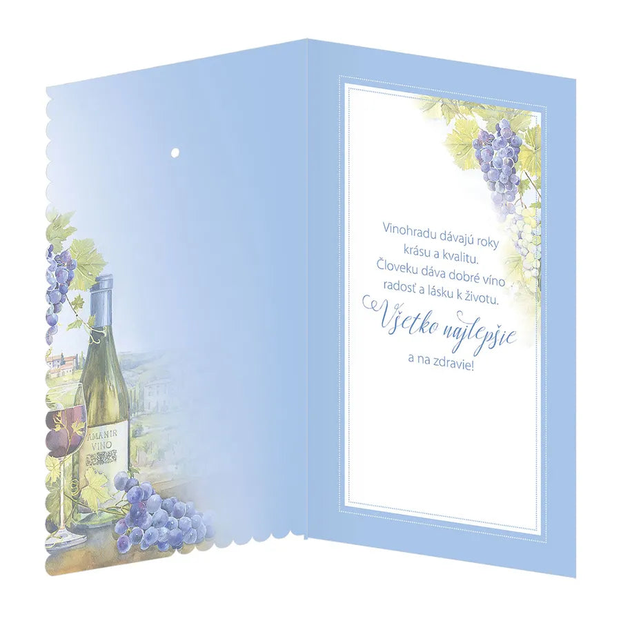 Blahoželanie k 60. narodeninám s textom vo vnútri a drevenou ozdobou na vrchnej časti. Súčasťou priania k narodeninám je aj farebne zladená obálka.