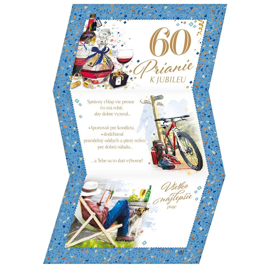 Prianie k 60.narodeninám pre muža- listina s textom. Súčasťou priania je aj farebne zladená obálka.
