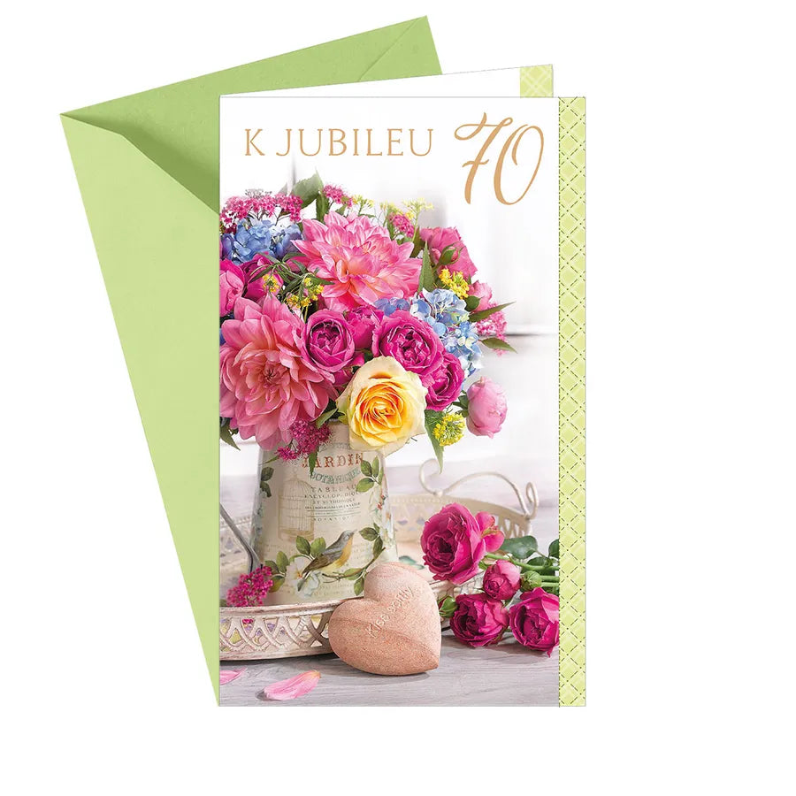 Blahoželanie k 70. narodeninám - listina. S textom vo vnútri priania. Súčasťou balenia je aj farebne zladená obálka.