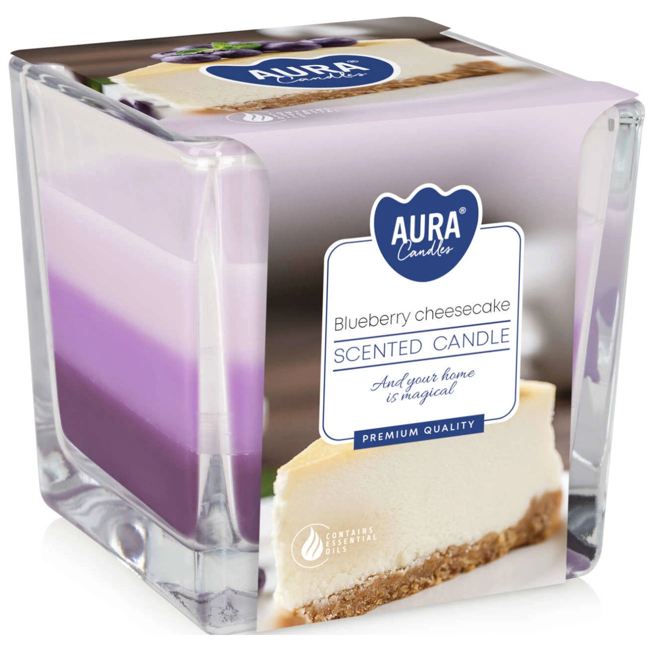 Dvojknôtová vonná sviečka v skle trikolóra - Čučoriedkový koláč