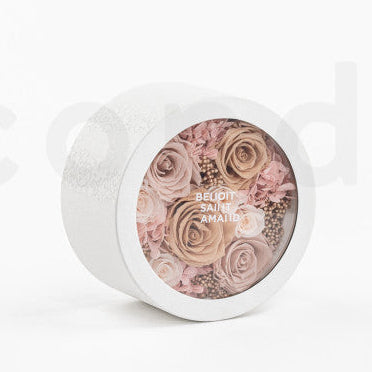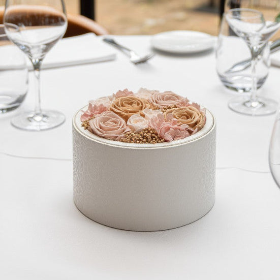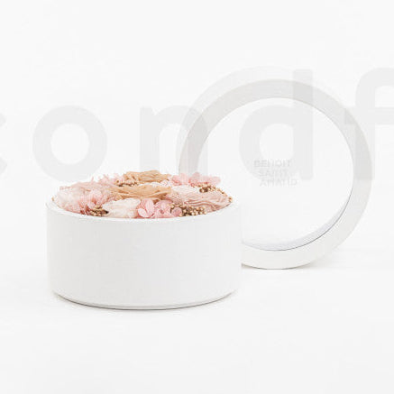 Flowerbox - ružové kvety v okrúhlej krabičke