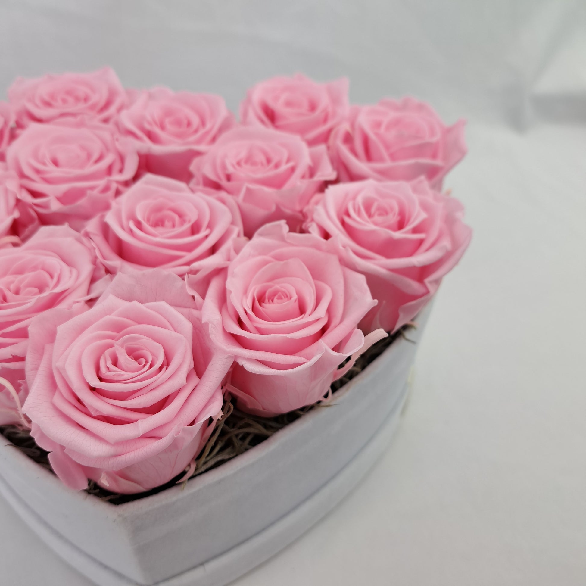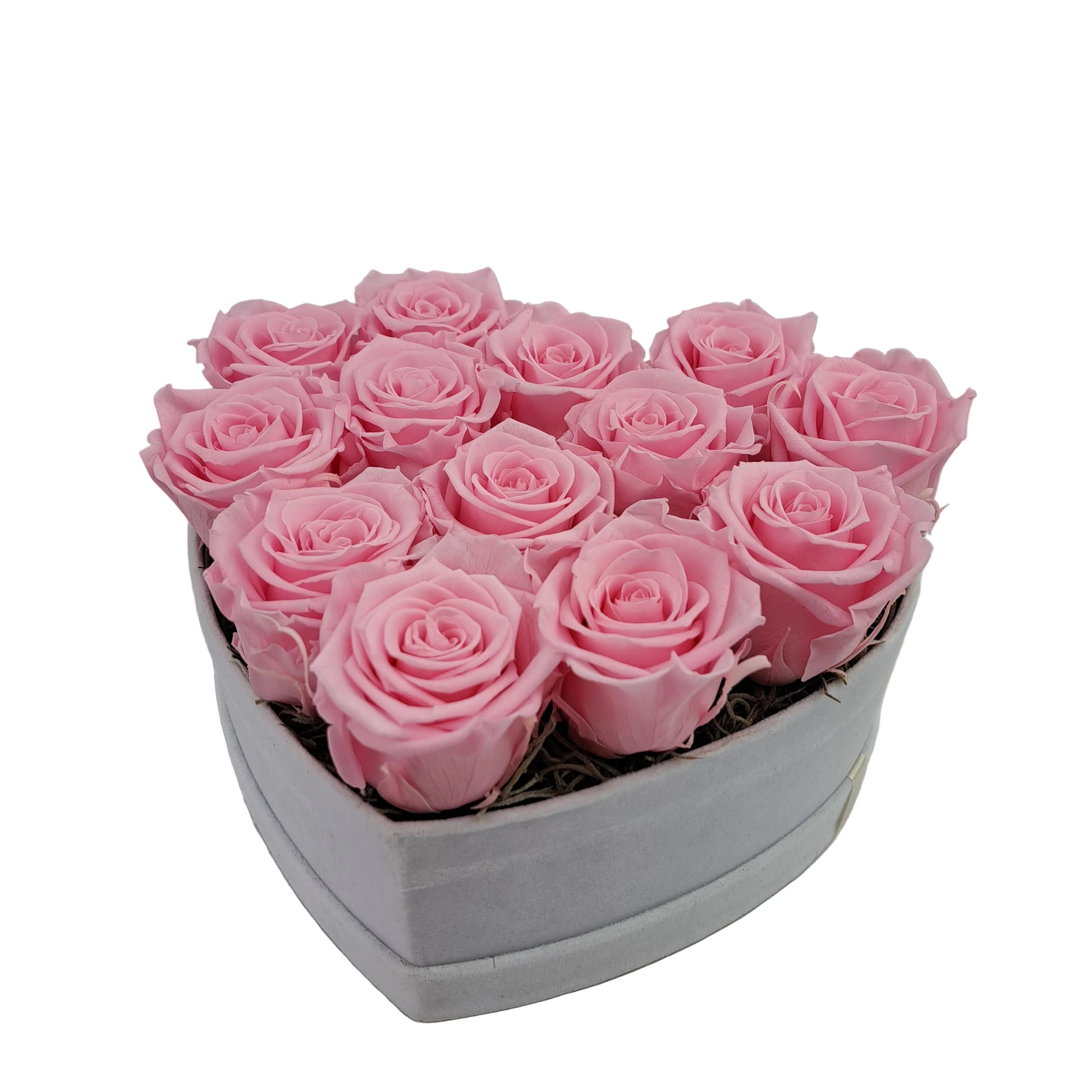 Flowerbox v tvare srdca - Ružový - 13 stabilizovaných ruží