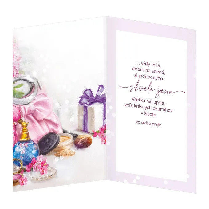Blahoželanie k narodeninám s otočníkom a textom vo vnútri. Otočník umožňuje výber veku obdarovaného (od 10 po 99). Súčasťou priania je aj farebne zladená obálka.