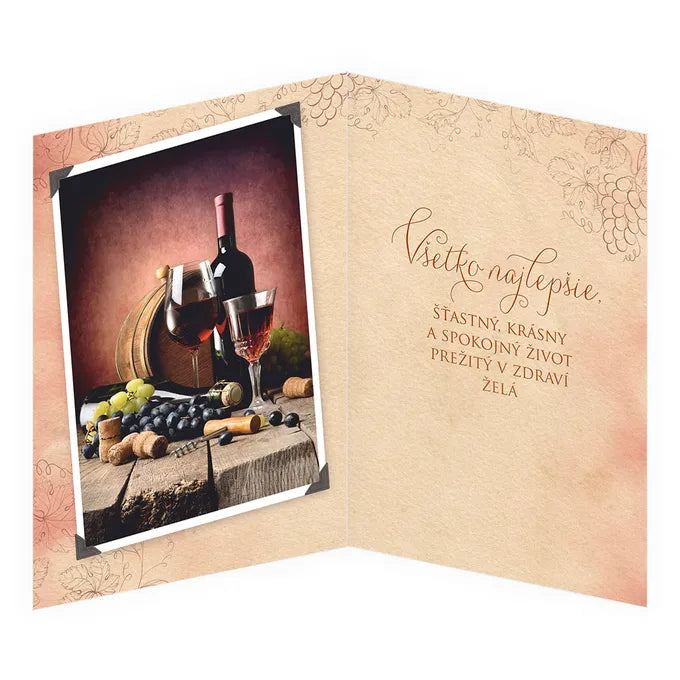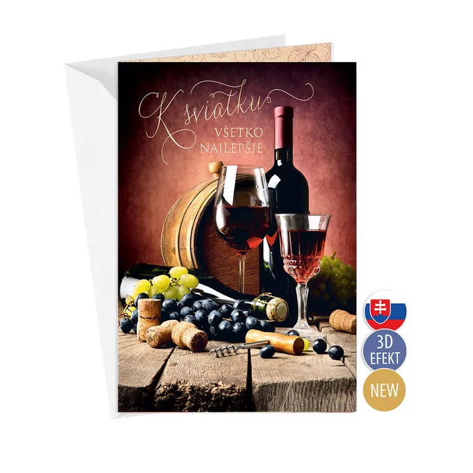 Blahoželanie k narodeninám s textom vo vnútri. 3D efekt umocňuje dojem priestoru. Súčasťou priania je aj farebne zladená obálka..
