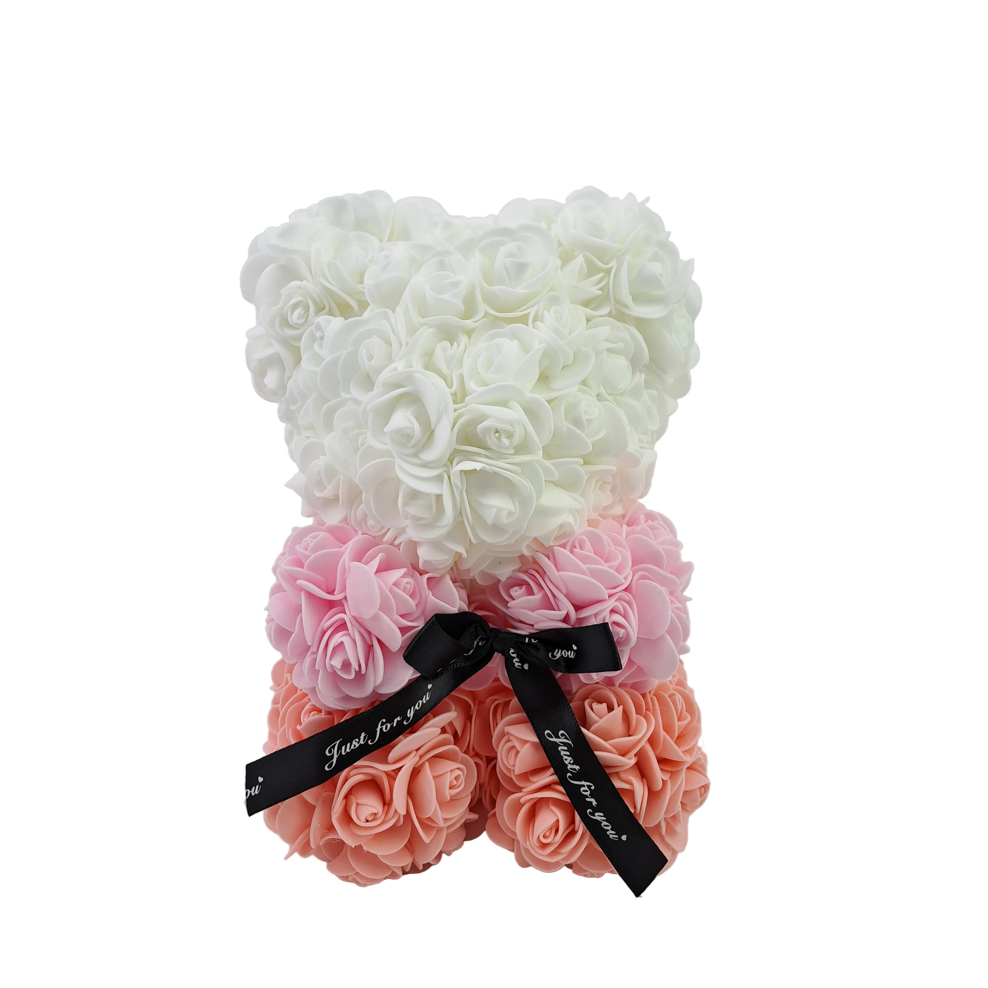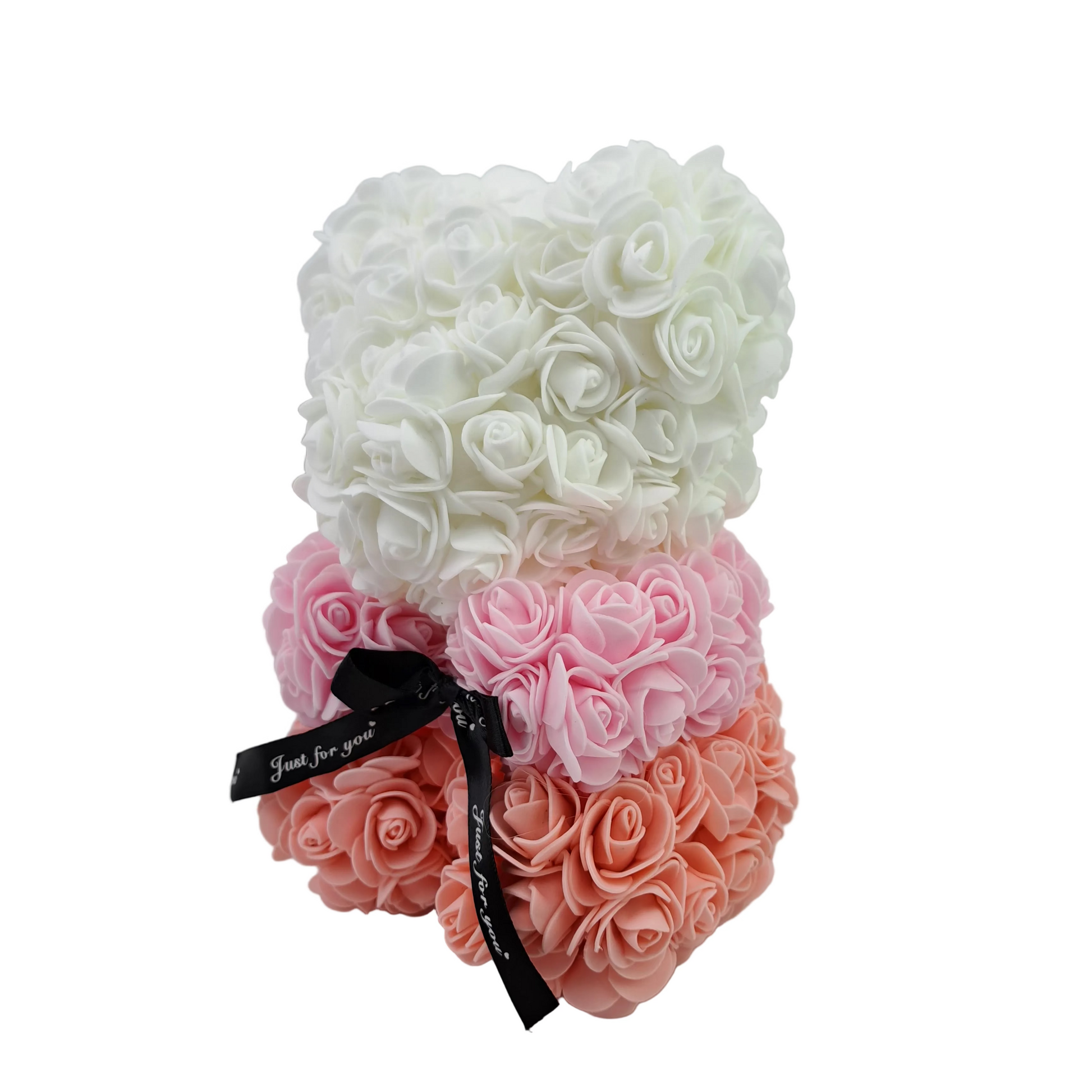 Medvedík z penových ruží v ružovej,marhuľovej,bielej farbe.