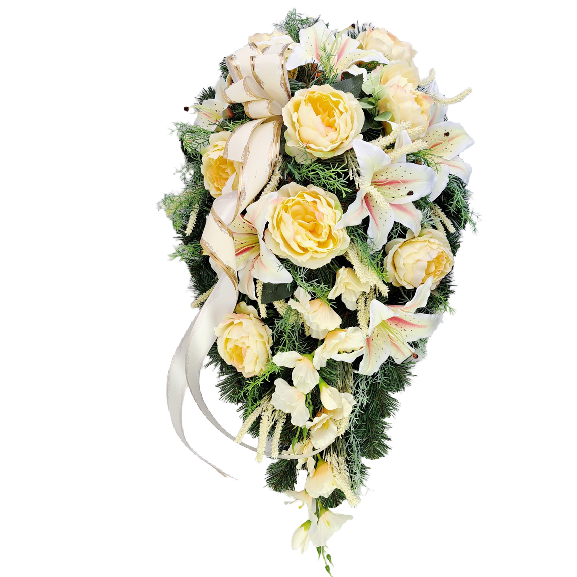 Smútočná kytica kvapka - Kráľovské ľalie a pivonie 70cm