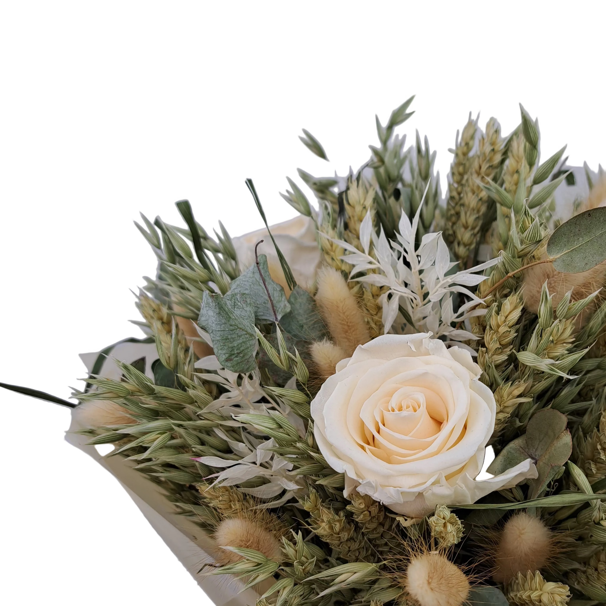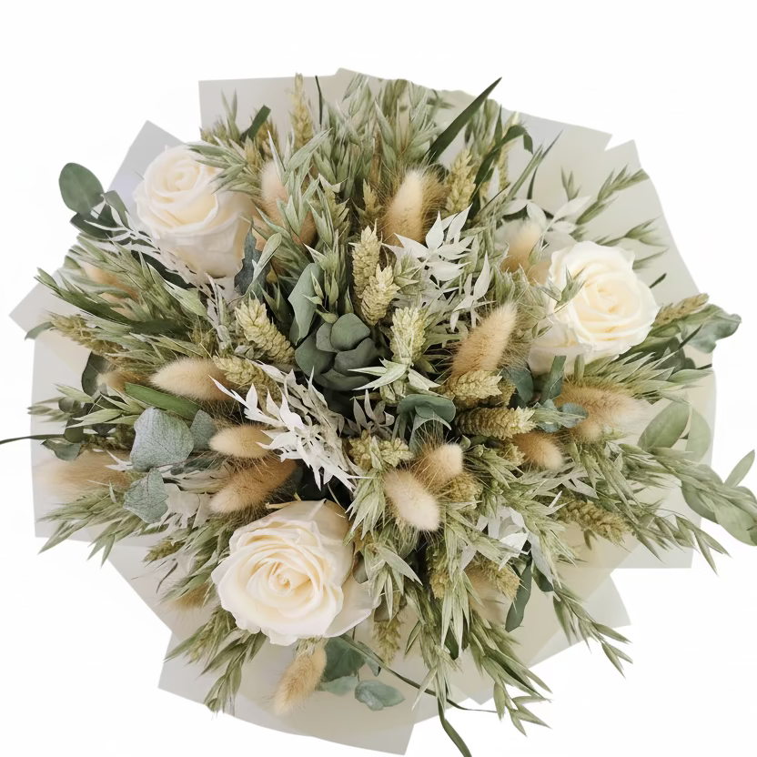 mix sušených kvetov a tráv (phalaris, avena, triticum, hordeum,ruscus stabilizovaný, eucalyptus cinerea sušený)