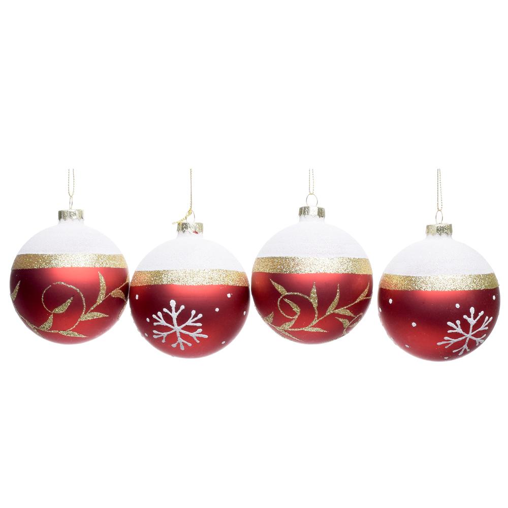 Vianočné gule sklenené červeno-biele - 4ks/balenie