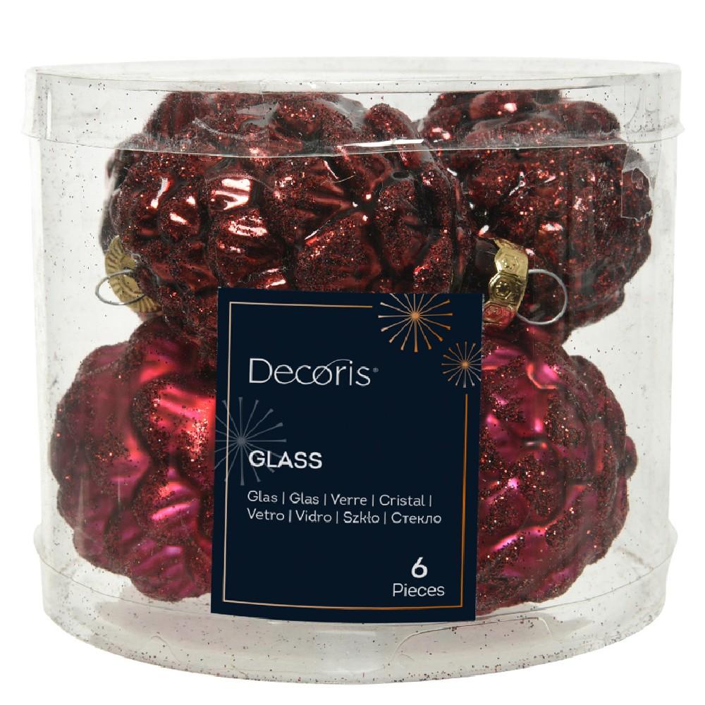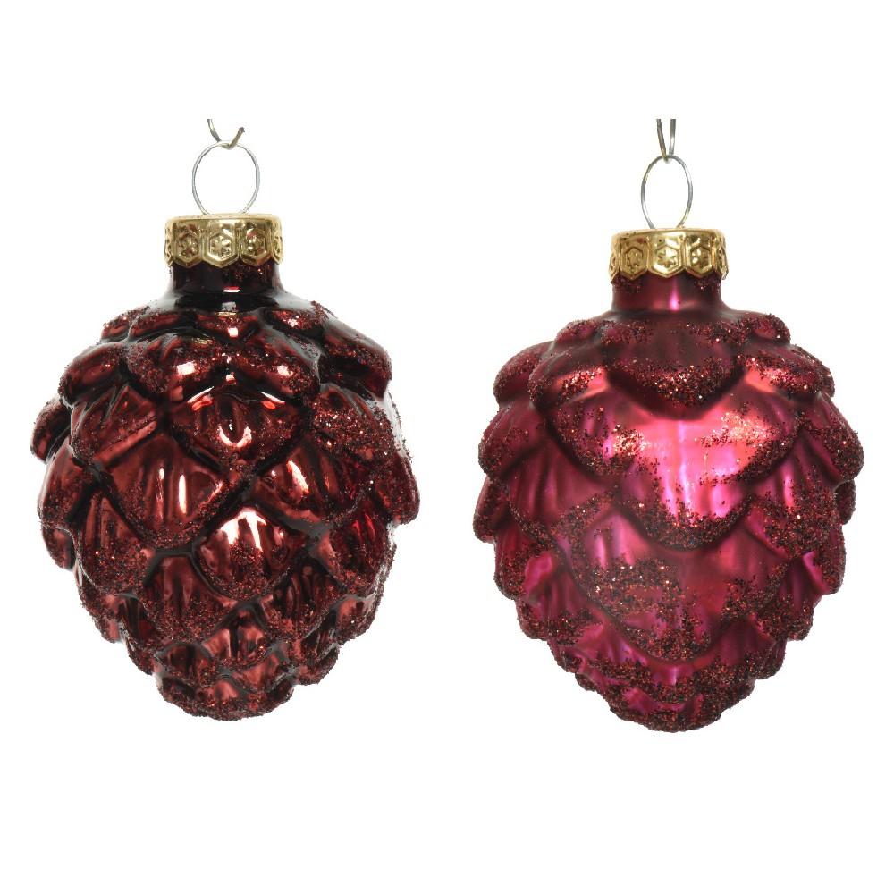 Vianočné šišky sklenené bordové - 6ks/balenie