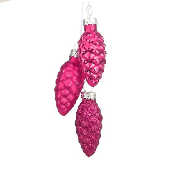 Vianočné šišky sklenené ružové - 3ks/balenie