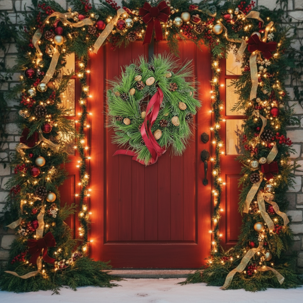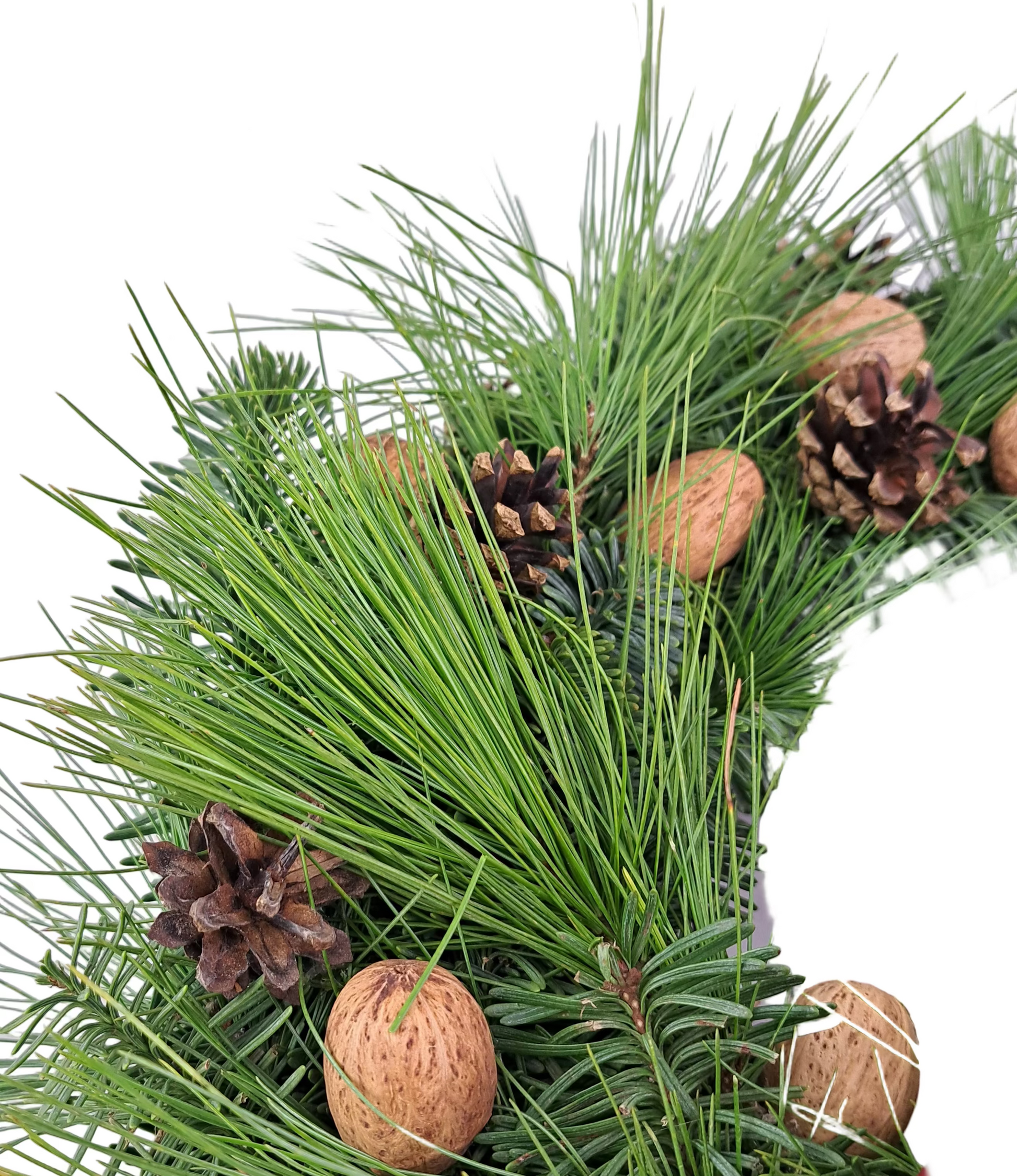Základ venca zo živej neopadavej čečiny Nobillis doplnený prírodnými doplnkami.